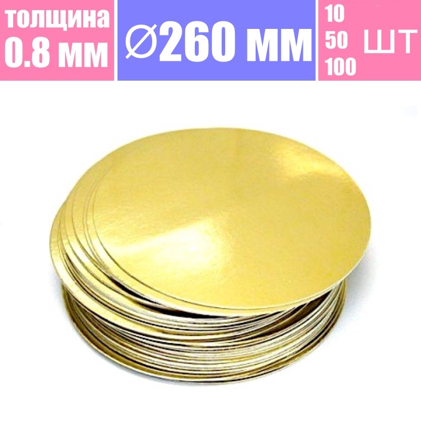 Подложка для торта Ø 260 мм 2х сторонняя ламинация золото/жемчуг, толщина 0.8 мм - купить. Розница от 10 шт, опт от 100 шт. Гарантия качества. Быстрая доставка по Москве, России и миру. Скидка на первый заказ и постоянным покупателям 5%. Ищите промокод для скидки на нашем сайте. Служба заказов: WhatsApp/Viber/Telegram +7(977)807-57-53